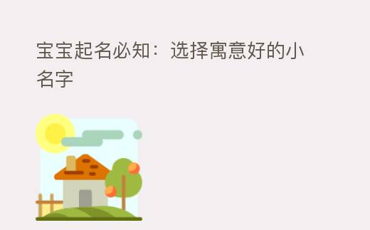 摘要:寶寶起名必知:選擇寓意好的小名字寶寶起名必知,孩子出生後我們應該給自己的寶寶取一個有寓意的好名字。因爲名字是家長們給予孩子的第一份禮物,它能代表著父母對孩子們美好的祝願和祝福,所以我們在選擇寶寶的名字時一定要慎重。1、根據生肖特性選字十二屬相分別對應不,寶寶起名必知:選擇寓意好的小名字